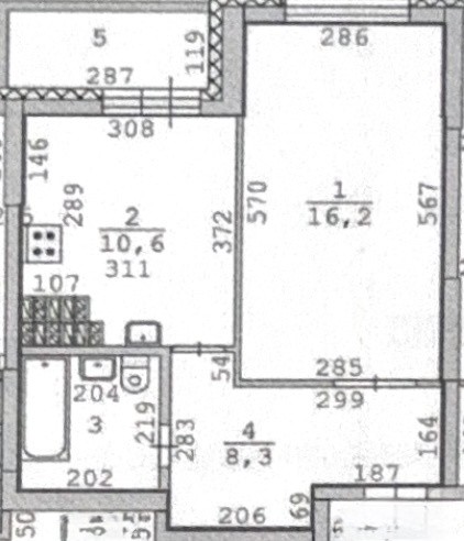 Площадь (общая/жилая/кухни) 39.5/16.2/10.6 кв. м